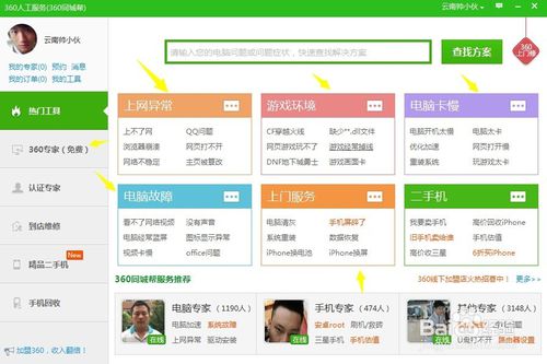 5、看到很多選項(xiàng)。其中我們以免費(fèi)及使用360工具為主。如果在已有的選項(xiàng)當(dāng)中沒(méi)有您需要解決的電腦問(wèn)題,您可以手動(dòng)在該頁(yè)面的搜索欄內(nèi)寫(xiě)入您所需要解決的問(wèn)題。