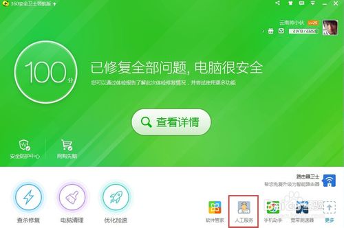 4、點(diǎn)擊360安全衛(wèi)士圖標(biāo),選擇人工服務(wù)。
