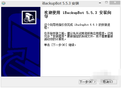 1、ibackupbot 下載后,打開下載好的安裝包,單擊【下一步】。