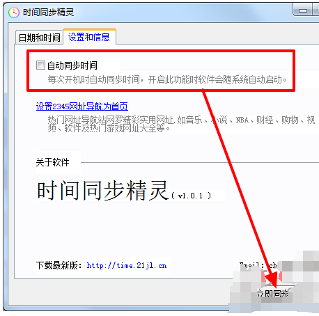 如需自動同步時間,則在”設置和信息“欄內勾選【自動同步時間】,然后點擊【立即同步】