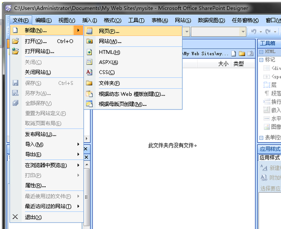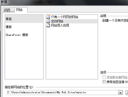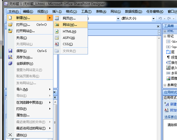 1、單擊菜單欄中的“文件”——“新建”——“新建網站”,選擇空白網站