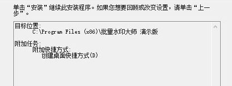 1、點擊.exe啟動,這里就是軟件的安裝頁面,會提示您選擇軟件保存的位置,這里默認C:\programFiles(x86)\批量水印大師