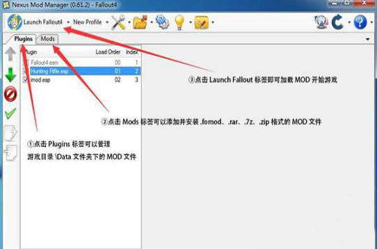 3.點擊 Launch Fallout標簽即可加載MOD開始游戲