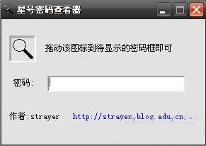 一個查看星號密碼的工具。網上這種工具也有很多,不過它很簡單,沒有掛鉤,也沒有注入進程,直接調用相應函數獲取密碼,殺軟也不報毒,可放心使用!