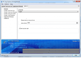 PS Tray Factory是工具欄工具,擁有類似 Windows XP 中“隱藏工具欄中非使用中的圖標”的功能,也能夠將低使用率的工具欄系統圖標收集在它的選單之中。
