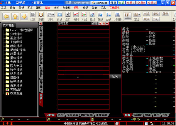 新時代證券大智慧支持滬深行情、股指期貨、延時港股、全球指數、國內外商品期貨行情、外匯行情。新版行情,以其優異的性能、豐富的特性、多種分析功能以及完善的委托系統,具備客戶風險評測,電子合同簽約,多存管銀