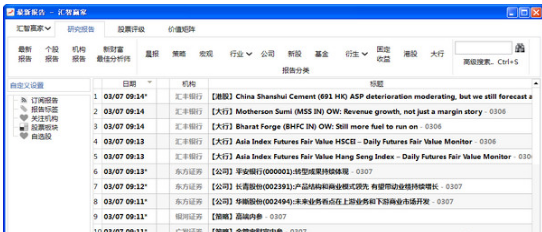 匯智贏家是一款實時提供券商研究報告的證券資訊產(chǎn)品,覆蓋國內(nèi)外各大機(jī)構(gòu)的研究成果。收集的研究報告涉及宏觀、行業(yè)、公司、策略、債券、基金等研究內(nèi)容。產(chǎn)品2007年問世以來,被眾多專業(yè)人士所青睞,現(xiàn)有券商、