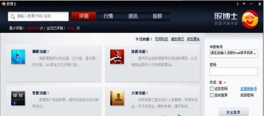 股博士是深圳市大贏家網(wǎng)絡(luò)有限公司推出的一款針對(duì)A股市場(chǎng),免費(fèi)的個(gè)股360評(píng)測(cè)平臺(tái),她遵循“輕松選股、全面測(cè)股、專(zhuān)業(yè)管股、方便聊股”研發(fā)思路,基于股博士金融模型算法庫(kù),從用戶(hù)實(shí)際