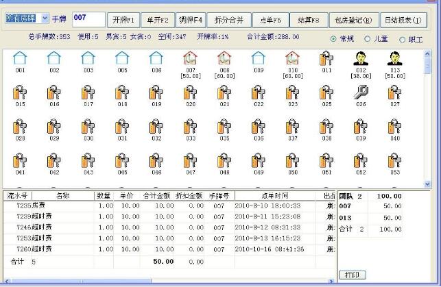 快速、強大的前臺開臺加單功能靈活的房間床位管理,可自定義房間類型,并可以在房間上設置最低消費靈活的操作權限設置,細化到每一個操...