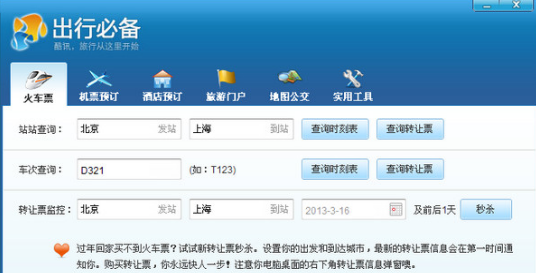酷訊出行必備為探親訪友、出差旅行、休閑度假人士專門設計開發的一款免費桌面應用程序,支持Windows操作系統。它包括了“火車票”,“機票預訂”,&ldq