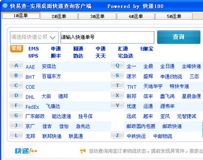 快易查是一款便捷的桌面快遞查詢客戶端,支持包括EMS、中通、圓通、順豐、韻達(dá)、宅急送等國(guó)內(nèi)百余家快遞公司運(yùn)單信息查詢。軟件可同時(shí)查詢多個(gè)運(yùn)單號(hào),并可自動(dòng)保存快遞信息,免除您遺忘快遞單號(hào)的困擾。 &n