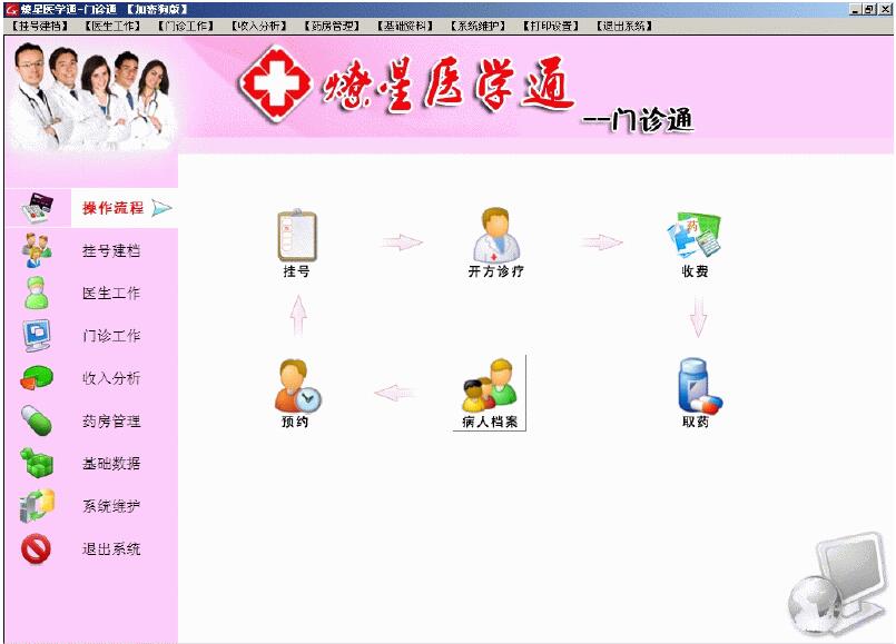 燎星醫(yī)學(xué)通最好用、最實用的診所管理軟件,根據(jù)中國現(xiàn)有私人診所工作流程,有時欠款比較多的現(xiàn)狀,量身定做的,特別適合農(nóng)村合作醫(yī)療診所使用。軟件結(jié)構(gòu)清晰,圖形化向?qū)В扇£P(guān)鍵字、拼音碼、五筆碼多種快捷碼,具