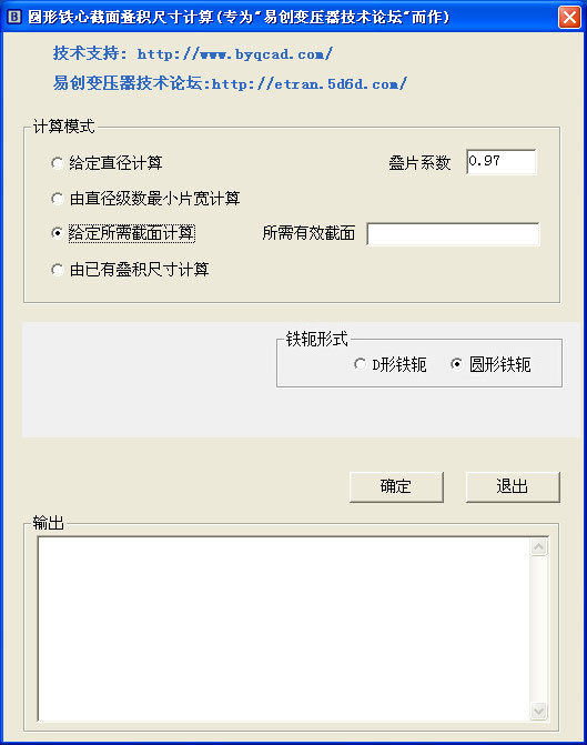 圓形鐵心截面疊積尺寸計算工具 1.0綠色版