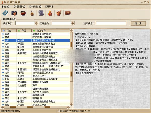 民間偏方查詢系統2012是一款集合10000多條民間偏方信息, 包涵養生,美容,健身,藥膳,藥酒,中西藥方等豐富內容, 另外自己可以添加平時收集的這些消息,非常方便,系統自帶隨機生成內容功能, 可以使