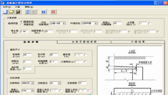 蓋板涵計算綜合程序不僅能計算上部蓋板承載力,而且能夠對臺身及基礎進行計算,給出需要地基承載力,且能出詳細的word計算書。