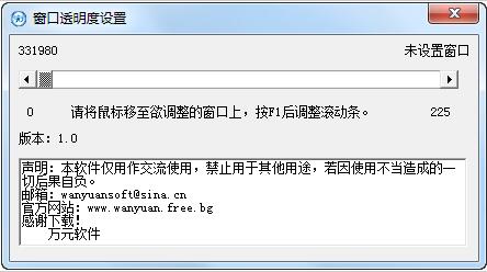 窗口透明度設置軟件是一個專門用來調整WINDOWS窗口透明度的免費工具,使用這個軟件,您可以自定義調整設置任何一個程序窗口的透明度,非常方便。 使用方法 打開工具后,把鼠標移至欲調整透明度的窗