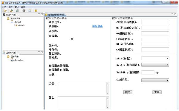 數字證書管理工具V2.0-使用java圖形化編寫,安裝版直接安裝使用(由于上傳大小的限制,本版本為不帶jre版,使用前請確保環境中已經安裝過jdk) 數字證書管理工具V2.0: 包括三個視圖,分別是: