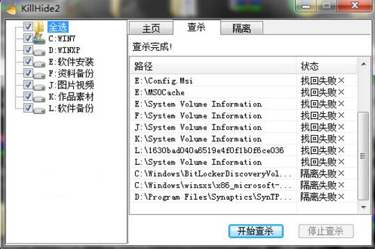 隱藏文件夾病毒清理工具一定程度上解決了電腦中了VBS病毒后,文件夾被隱藏,剩下快捷方式(或者exe病毒文件)的問題。 更新日志 1、增加暫停查殺、停止查殺功能; 2、增加查殺目錄選