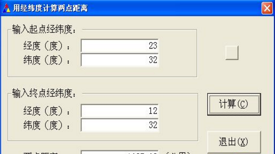 輸入兩點的經度和緯度,可以自動計算出兩點之間的距離!跟google比了一下,精度還不錯。.非常實用! 注:填入0-180之間的數字。