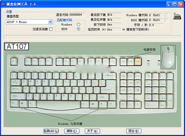 鍵盤檢測器是一個小巧的檢測鍵盤的軟件,有了它你可以用最快的時間來檢驗你鍵盤上的鍵位是否好用,這樣在買鍵盤的時候帶上它就不會被奸商給蒙混過關了,你可以根據軟件測試的參數來辨別鍵盤的優劣,而且還可以測試你