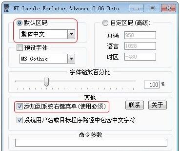 使用: 1.勾選“添加到系統(tǒng)右鍵菜單(使用必須)”。 2.在“默認(rèn)區(qū)碼”中選擇您所要運(yùn)行程序的本身的語(yǔ)言。 3.在要運(yùn)行的程序上右鍵,選擇&ldq