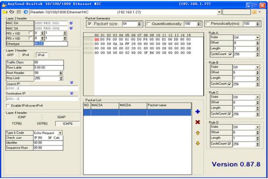 一款專業的數據發包工具。 基本簡介 很早就想找一個能夠像SMB一樣方便構造報文,又能夠向指定的網卡發送報文的工具。特別是調試Ipv6的時候,調試過程顯得特別麻煩!要找2臺IPv6主機,