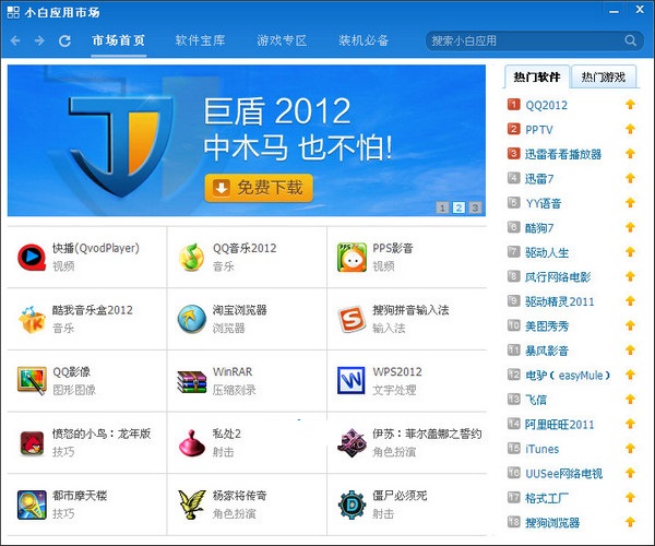 小白軟件管家是一款可以方便地進行軟件安裝、使用、升級、卸載的系統軟件。它能讓您更快、更簡單、更舒適的使用和管理軟件。軟件徹底綠色化,安裝軟件不怕流氓插件與病毒,重裝系統后所有軟件直接恢復。安裝小白軟件