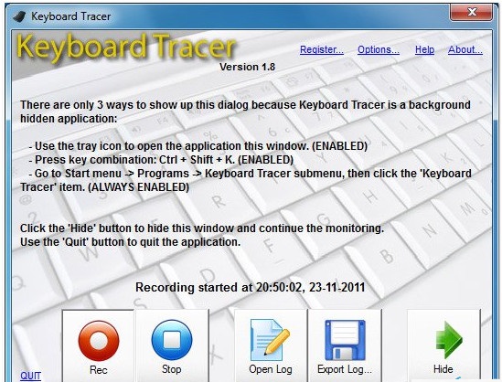 Keyboard Tracer是一款方便易用的鍵盤和鼠標點擊操作記錄軟件。可以記錄下別人未經允許擅自使用您的計算機的活動記錄。支持隨系統隱藏啟動。