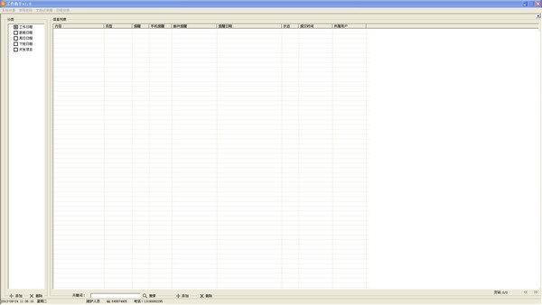 向陽任務助理可以登記未來需要執行的工作,到時彈出任務窗口。對執行的工作進行編緝記錄。可雙擊任務列表中的任務,彈出相應任務窗口以記錄有關信息。每項工作記錄包括的字段:開始時間/任務簡述/周期/重要度/輸