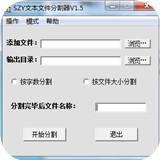 SZY文本文件分割器可以將較大的txt文件分割成N個小的TXT文件,可以用來分割小說等文本文檔,軟件小巧,界面友好,實用性強。 此版本修正了一個很大的BUG~,把原來漏分的地方修改了!并且新添按空間