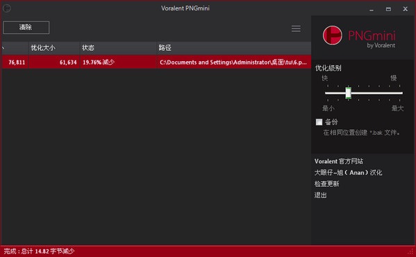 PNGmini用于優化壓縮PNG格式圖片的體積,它們能在不改變圖片分辨率且盡量不損耗清晰度的前提下讓圖片文件體積變得更小,以便在網絡中傳輸得以加快。 使用方法 把要壓縮的圖片拖入軟件框中 點擊優