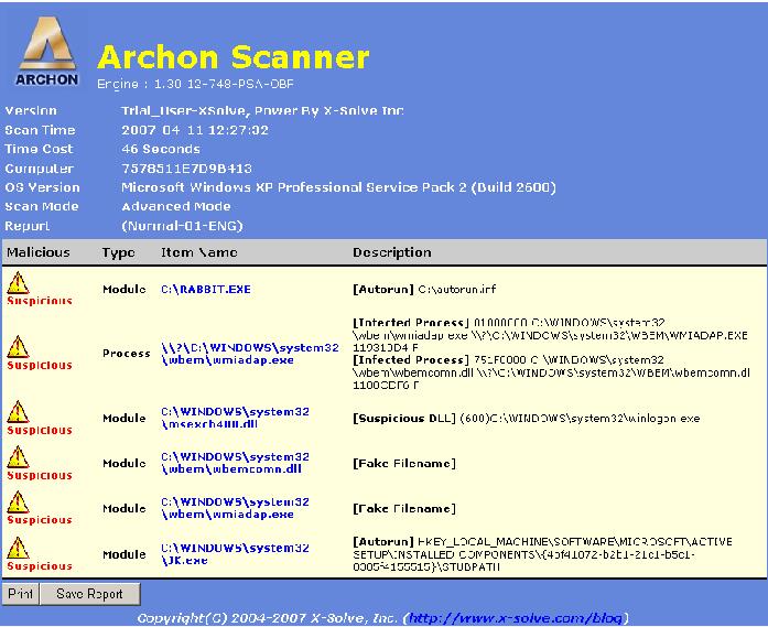 Archon提供偵測及分析未知Spyware/Rootkit軟件,能讓您面對未知的威脅時不再手足無措!Archon不需要常駐、不需要病毒碼甚至不需要安裝,并可以在已被感染的環境中執行,揪出潛藏在系統里