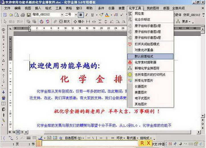 該軟件是專門為化學工作者定制基于WORD平臺的一套專業排版輔助軟件。 利用該軟件可以輕松實現化學中常用的同位素輸入、原子結構示意圖、電子式、電子轉移標注、有機物結構式、有機反應方程式、反應條
